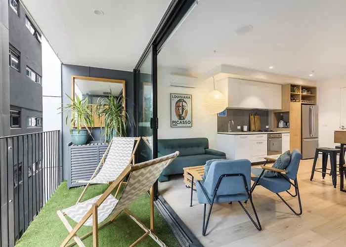City View Haven In South Melbourne apartment offers a patio, as well as comforts like an air conditioner. You'll also come across hair dryers and towels.